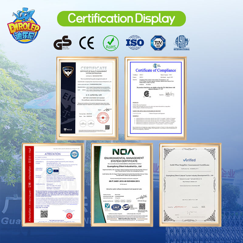Certificazione: Conforme agli standard GS, CE, RoHS, EN1176, ISO9001, ASTM e TUV, fornendo garanzia di sicurezza e qualità.