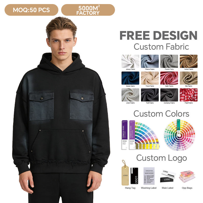Felpa con Cappuccio in Cotone Personalizzata di Alta Qualità, Oversize, Stile Street, Materiale Lavabile, Effetto Vissuto per Uomo