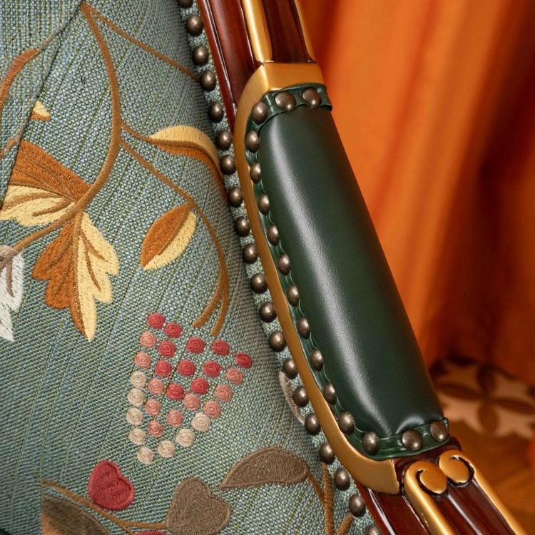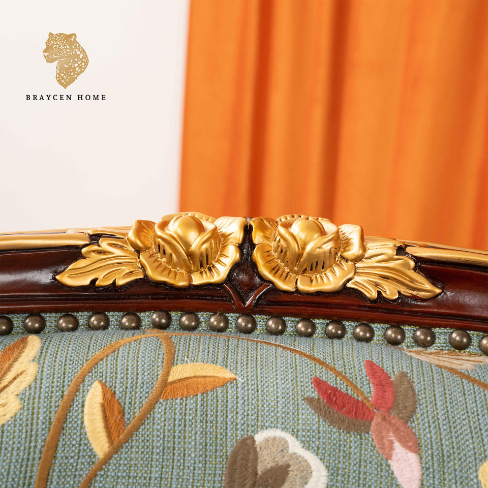 Divano Singolo in Pelle Stile Europeo Personalizzato di Fabbrica con Intagli Dorati per Soggiorno Divano Componibile Antico Francese in Vera Pelle