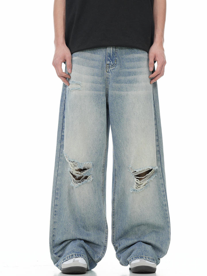 Jeans Dritti Strappati Personalizzati Stile High Street, Denim Largo e Baggy per Ragazzi e Ragazze, Lavaggio Estivo con Effetto Trasparente