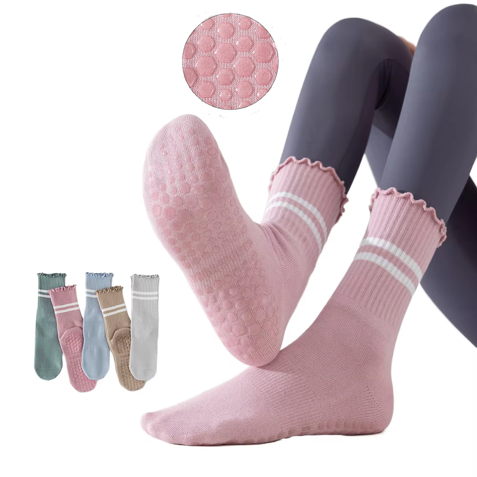 Calzini da Yoga Pilates e Trampolino in Cotone Traspirante Antiscivolo con Balza Personalizzati di Fabbrica Vendita Calda
