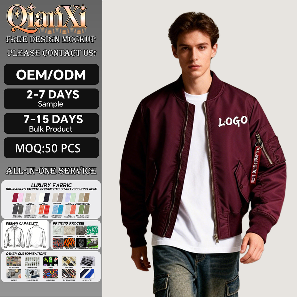 Giacca da Volo Bomber da Uomo MA-1 Pilota per Esterno Antivento e Impermeabile Primavera Autunno con Logo Personalizzato di Fabbrica