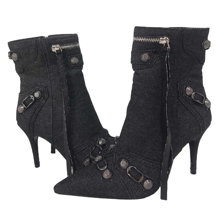 Stivaletti in Denim con tacco alto con cerniera Punk con tacco alto da donna di lusso Chic con rivetti e fibbie