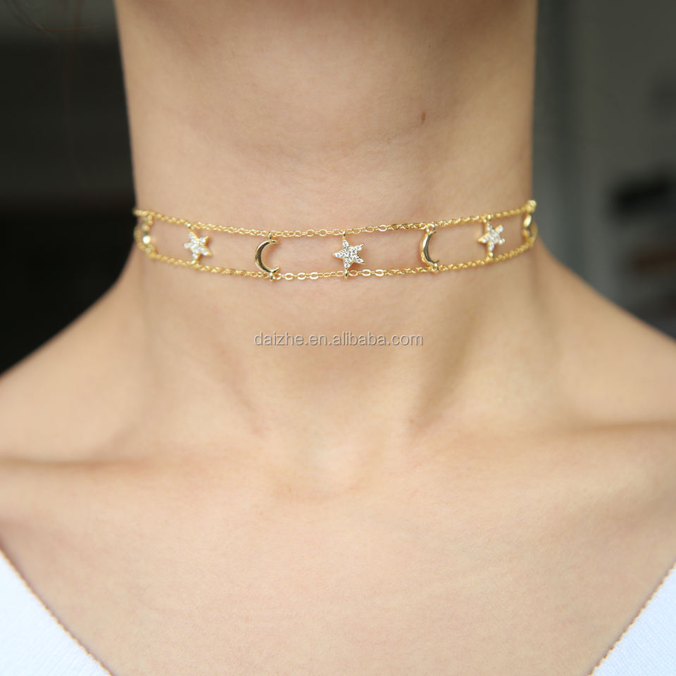Collana girocollo a catena doppia moda con stella Boho in pietra nera CZ in oro rosa