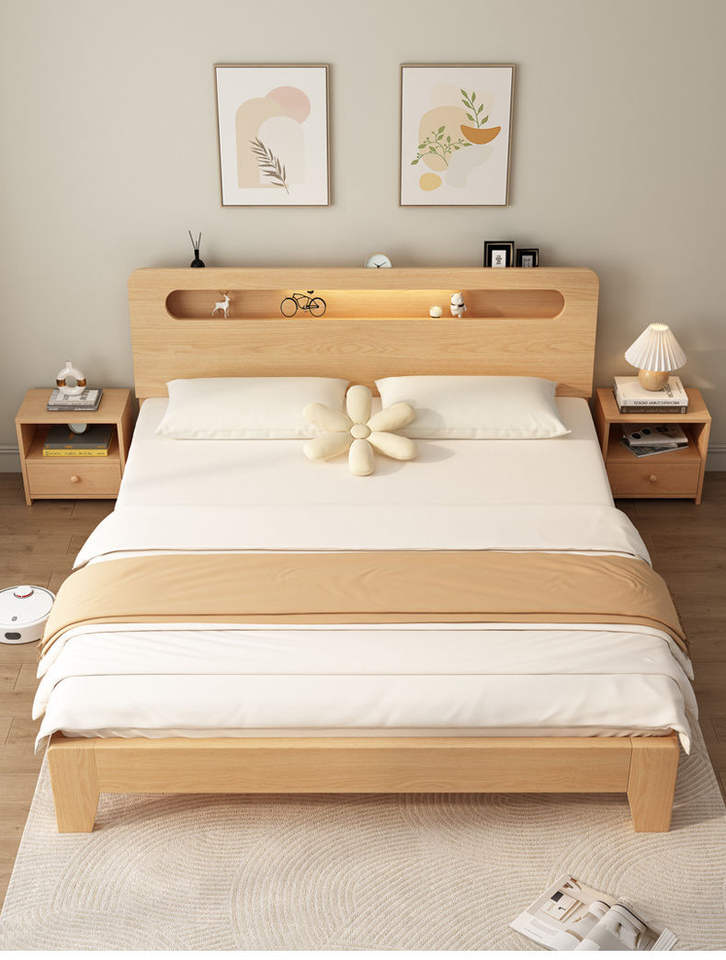 Set di Mobili per Camera da Letto in Offerta, Letto Matrimoniale per Hotel e Appartamenti, Letto Singolo in Legno Massello di Quercia Personalizzato di Fabbrica in Stile Nordico Semplice ed Elegante