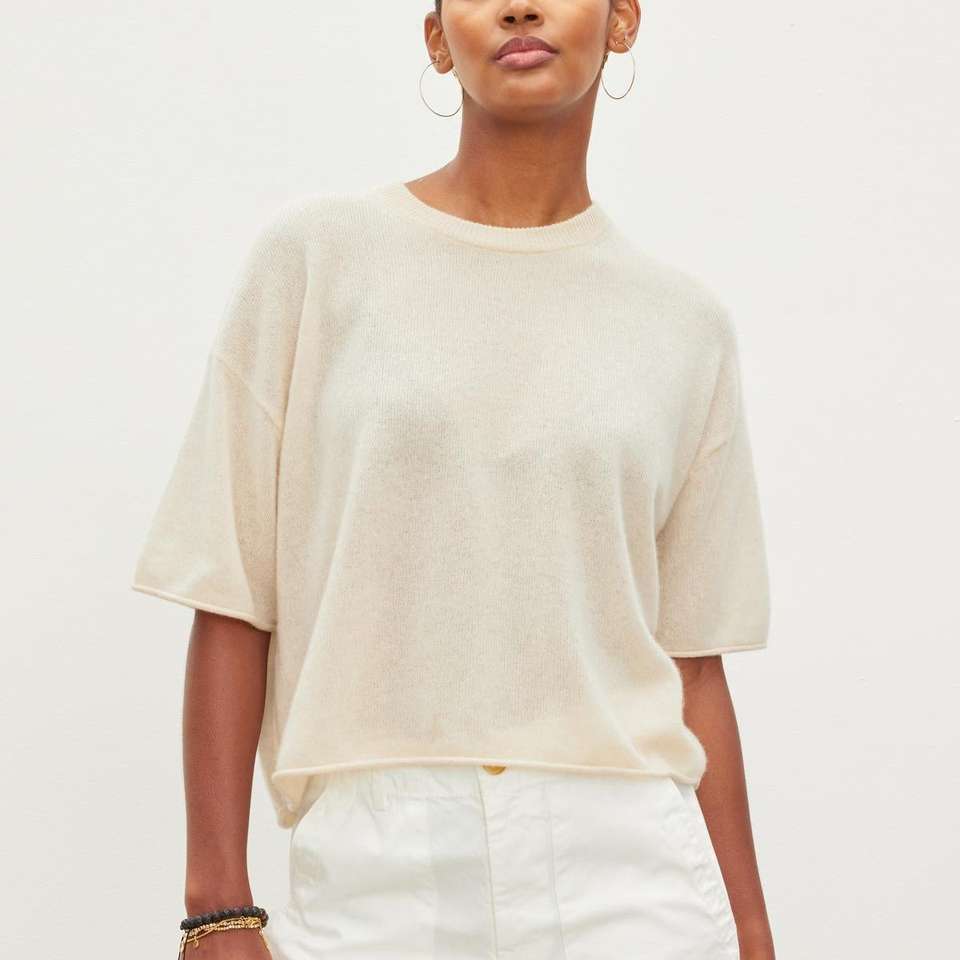 Fabbrica personalizzata rosa marrone grigio nero giallo bianco avorio manica corta riciclata grado al meglio 100 maglione corto di Cashmere donna