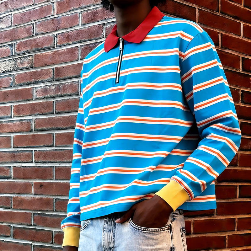 Maglietta a Maniche Lunghe da Rugby per Uomo con Zip a un Quarto, Colletto a Polo a Contrasto e Righe, Personalizzabile
