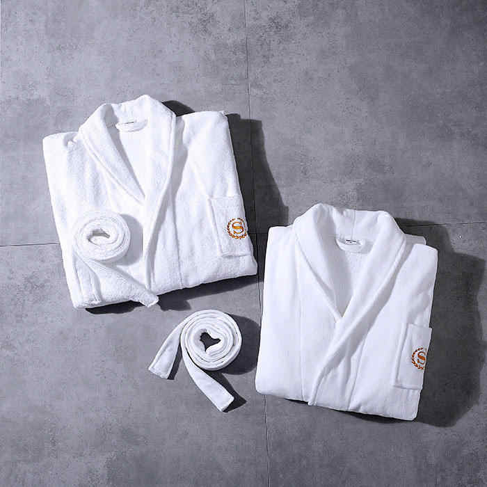 Accappatoio da Bagno in Spugna 100% Cotone Bianco con Logo Ricamato Personalizzato per Hotel