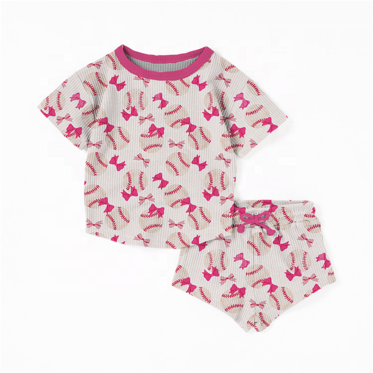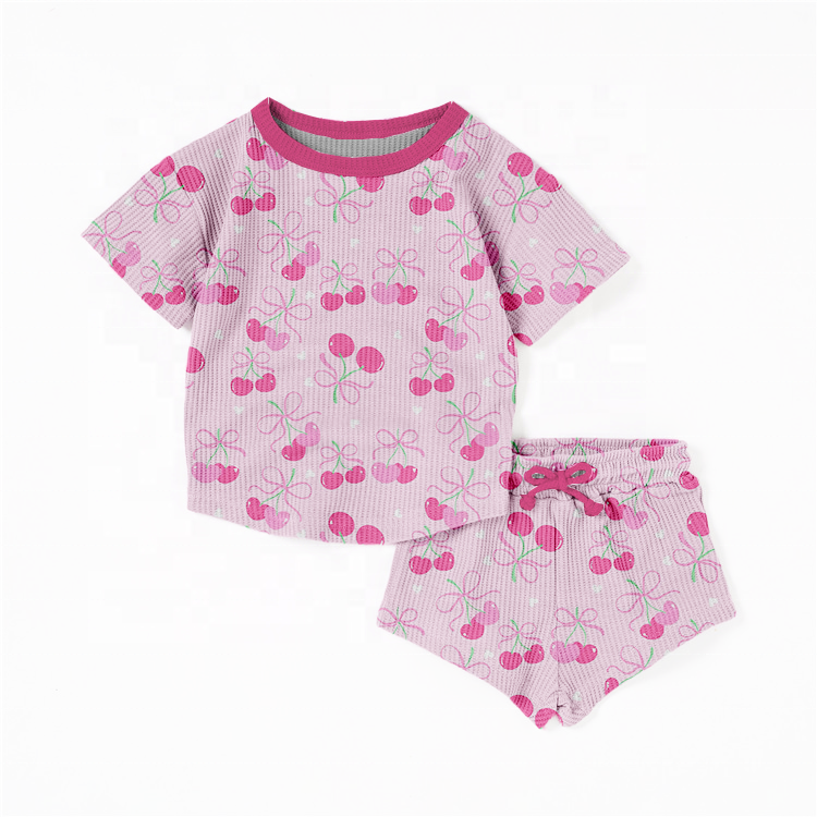 Factory Custom Waffle Fabric Teenage Girls Clothing Sets Girls Boutique Clothing Two Pieces Lounge Sets Summer Soft Outfit