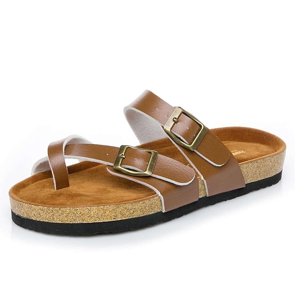 Pantofole da spiaggia con fibbia regolabile all'ingrosso personalizzate in fabbrica sandali in sughero da donna