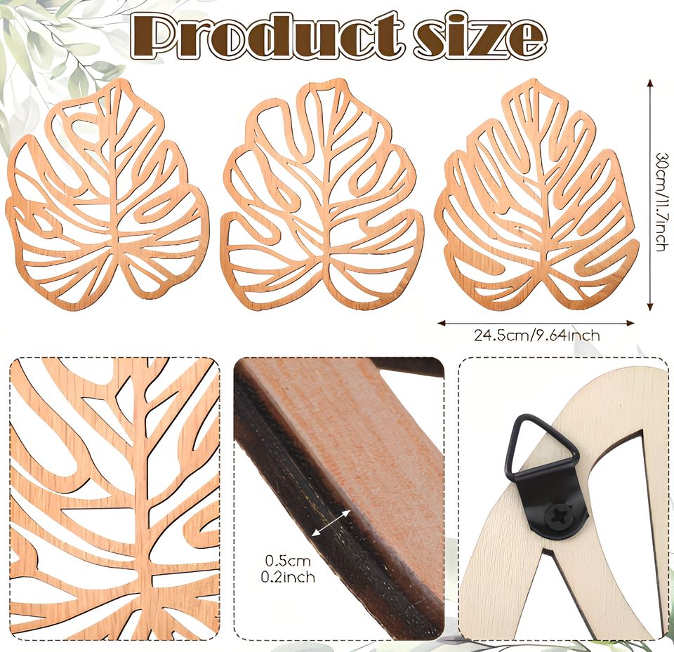 Factory Customizable 3 Pcs Palm Leaves Wood Wall Decor for Home Living Room Kitchen Bedroom Garden
