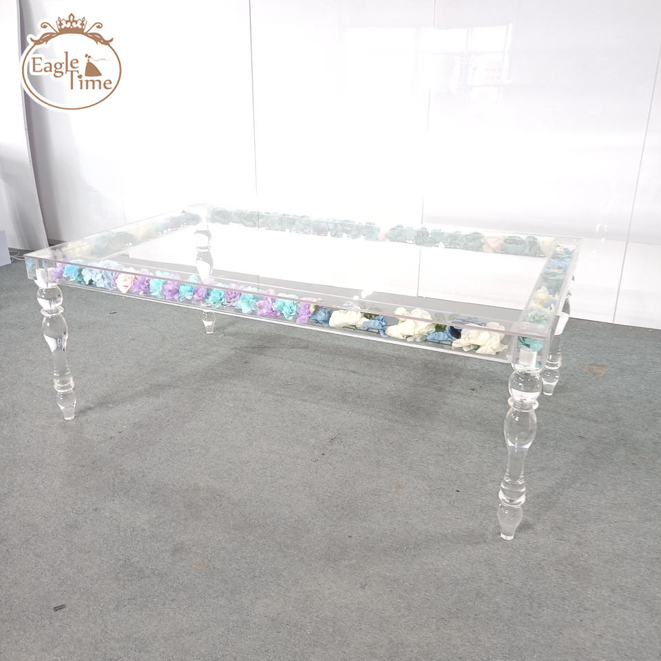 Fabbrica su misura rettangolo di cristallo trasparente rotonda banchetto festa Diner acrilico tavolo di nozze per la decorazione di eventi