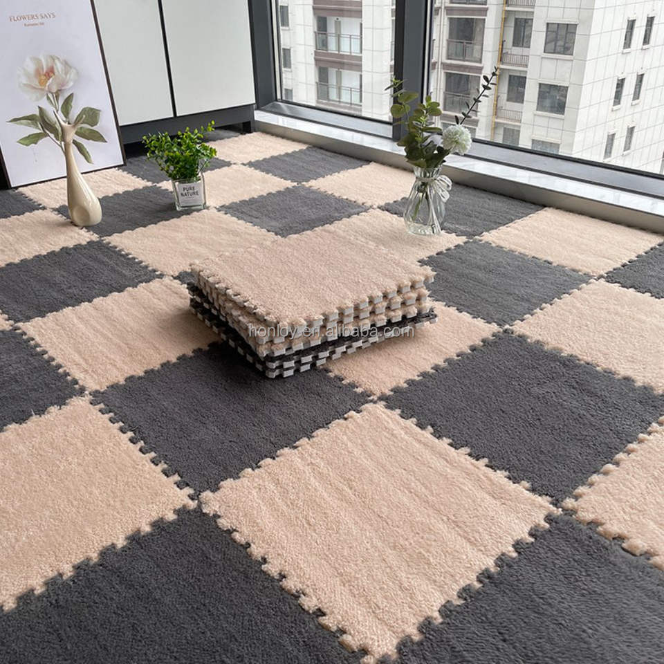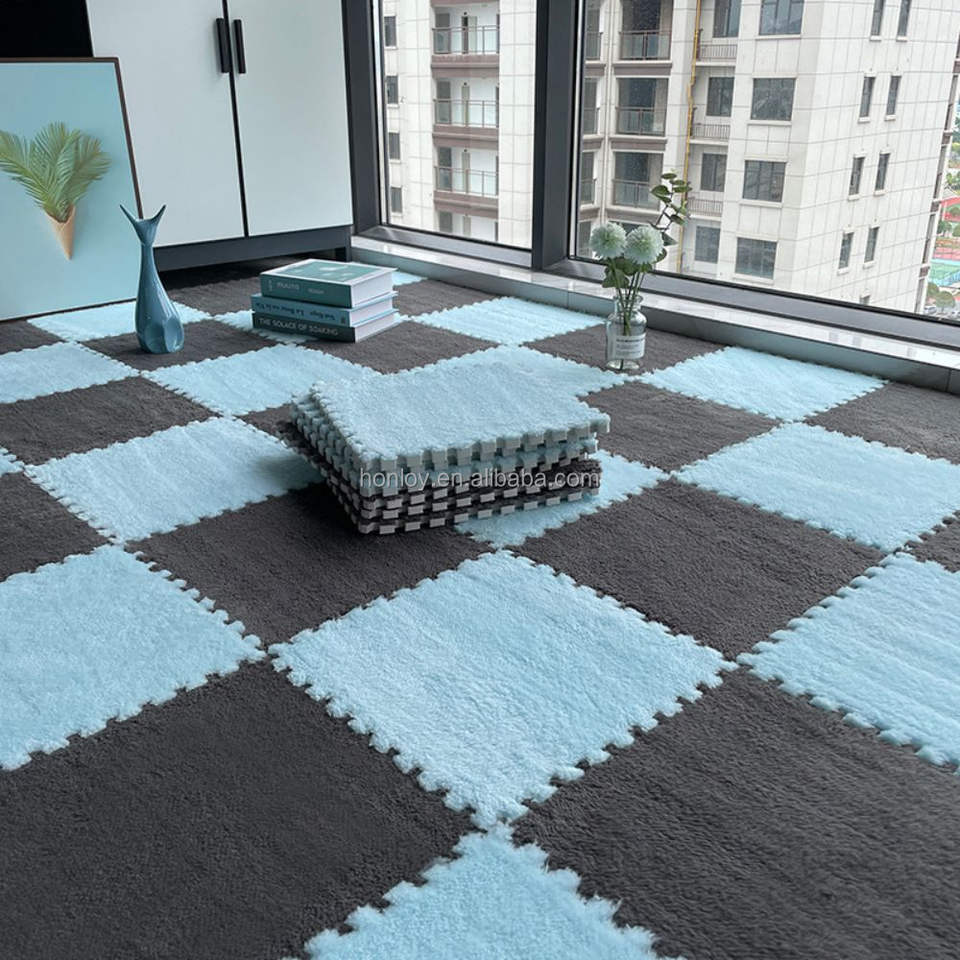 Factory Customized Wholesale Puzzle Carpet Bedroom Children's Thickened Interlocking Floor Mat Ceramic Tile Puzzle Furry Carpet