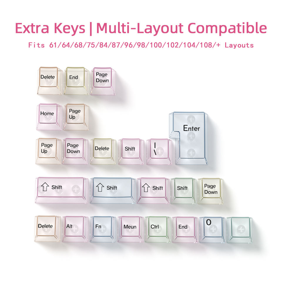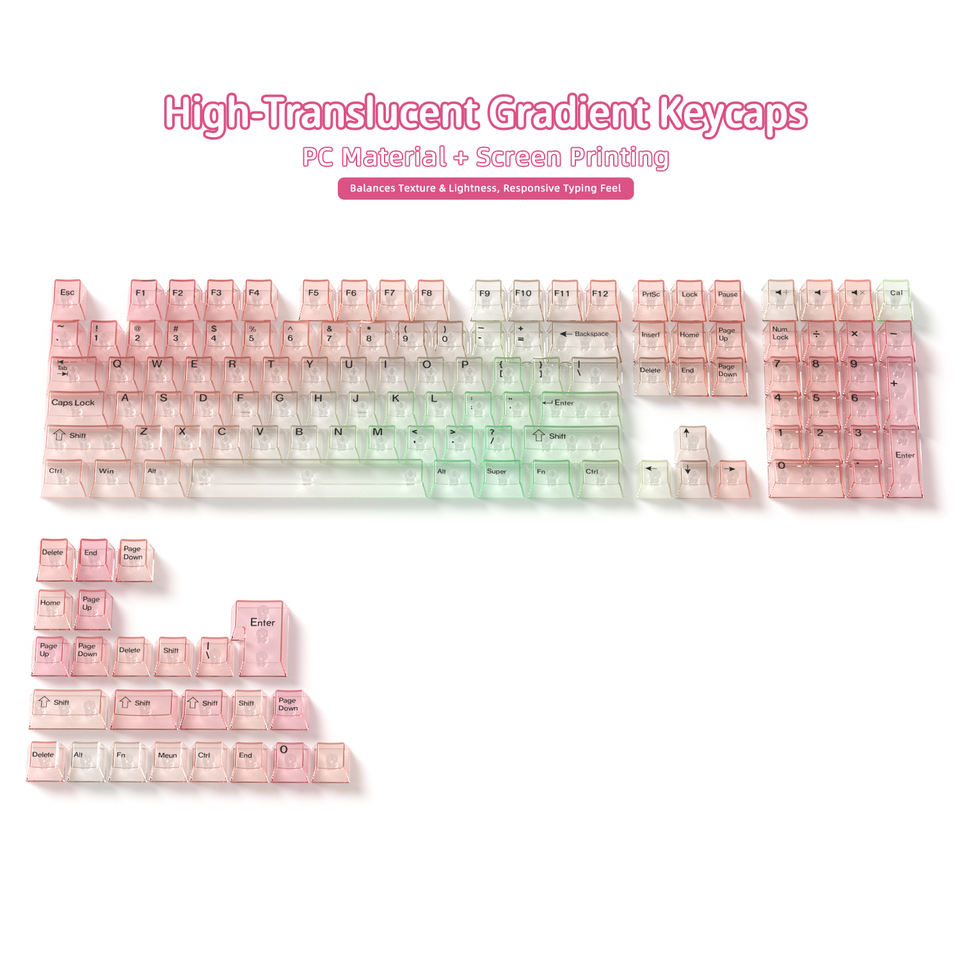 Keycaps in PC Trasparente Sfumato da 132 Tasti, Profilo Originale, Stampa Nitida, Compatibili con la Maggior Parte delle Tastiere Meccaniche da Gaming - Direttamente dalla Fabbrica