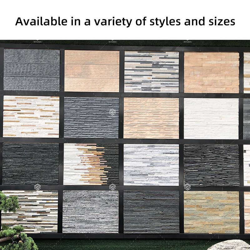 Pannello a Flusso d'Acqua 3D Scanalato Naturale per Rivestimento Murale, Piastrelle in Pietra Culturale di Ardesia, Rustico e Resistente alle Intemperie per Esterni