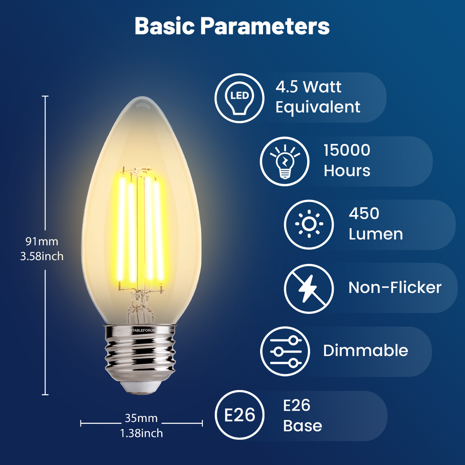 4.5 diretta dalla fabbrica W B11 E12 E26 lampadina a candela a LED 450 Lumen dimmerabile per Home Bar lampadario per UL T20 2200K/2700k/3000K/5000K