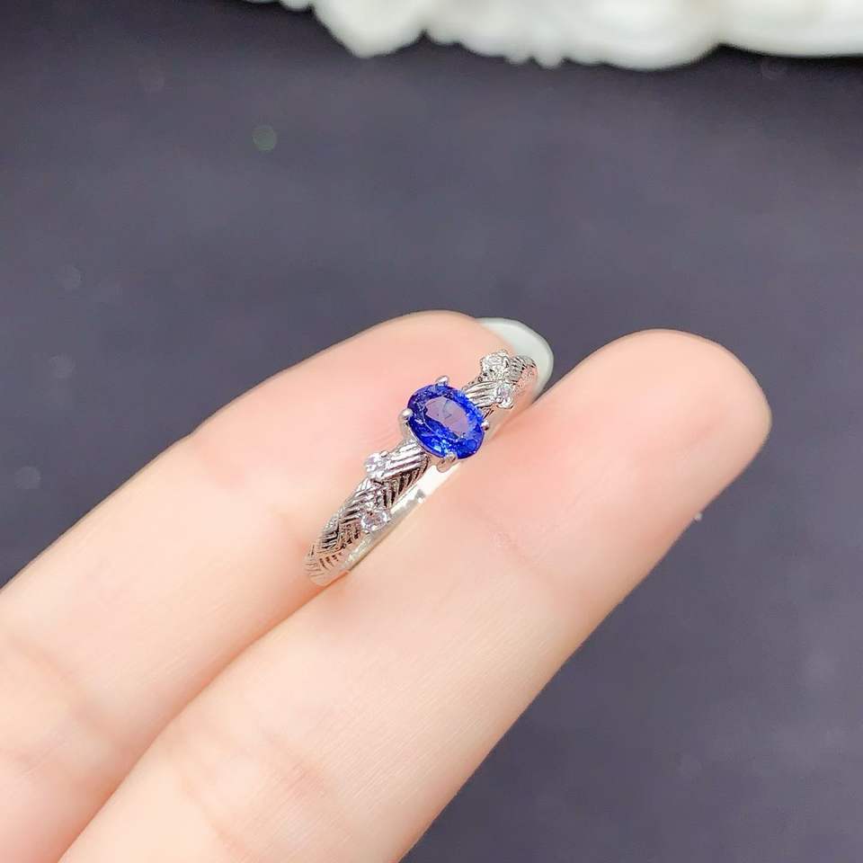 Anelli di Lusso in Argento 925 Placcato Rodio con Zaffiro Naturale Taglio Ovale, Direttamente dalla Fabbrica, per Donne, Matrimoni, Fidanzamenti e Regali per Feste