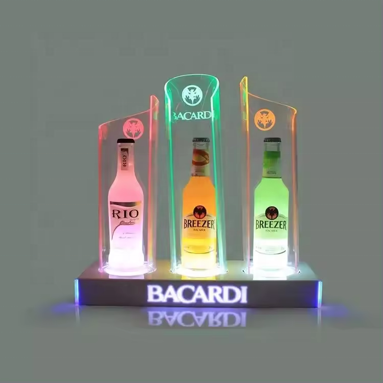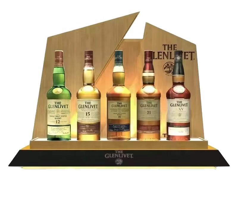 Factory Direct Bar Led Illuminated Wooden Bottle Glorifier Display Service Presenter LED Wine Rack