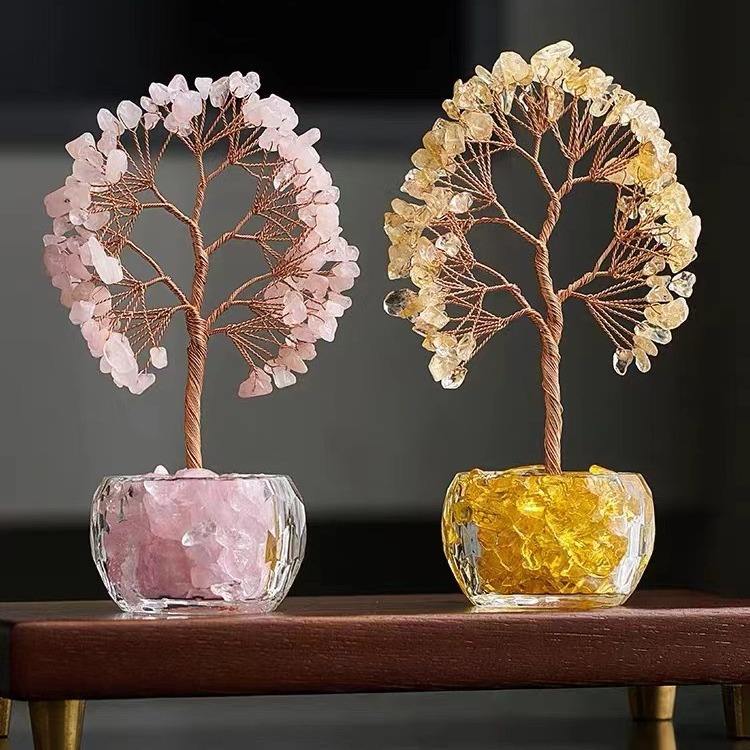 Factory Direct Carved Natural Crystal Wealth Energy & Fortune Tree Eco-friendly Office Decoration