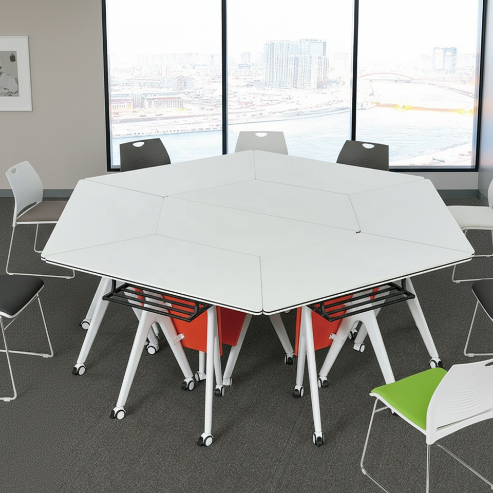 Tavolo Pieghevole per Conferenze su Misura con Telaio in Acciaio, Tavolo Pieghevole a Ventaglio per Uffici Aziendali, Eventi e Seminari