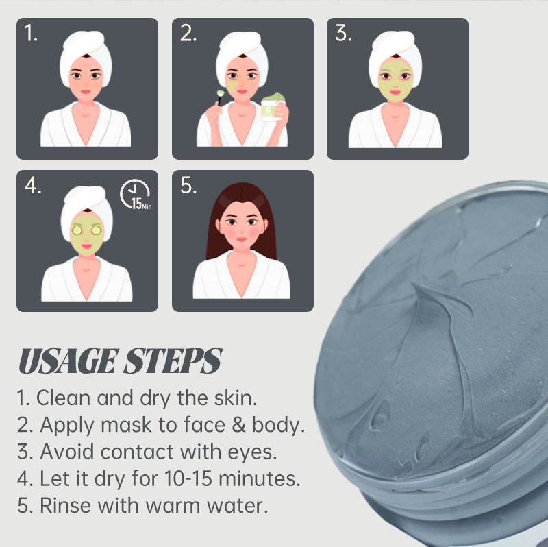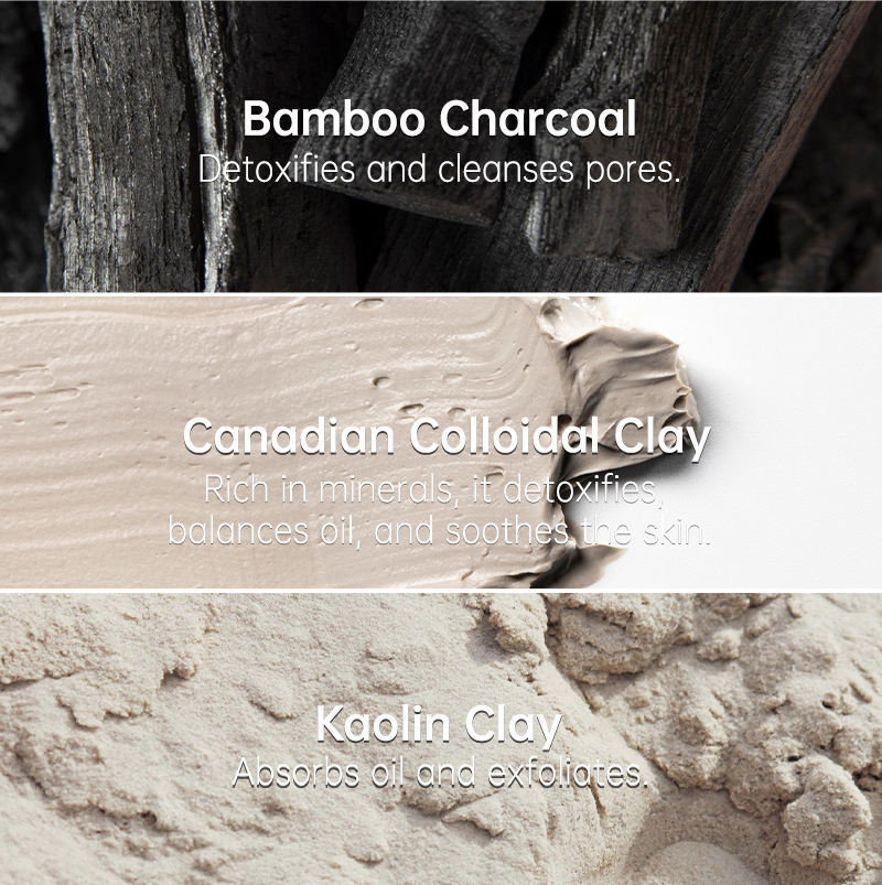 Maschera di argilla grigia per pulizia profonda diretta in fabbrica carbone di bambù e argilla caolino per il viso disintossicare ed esfoliare per una pelle liscia e chiara
