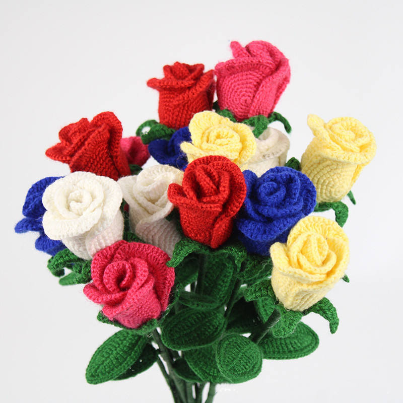 Bouquet di Rose Artificiali all'Uncinetto Fatto a Mano, Regalo per San Valentino, Decorazione per Matrimoni, Rosa Romantica Pronta