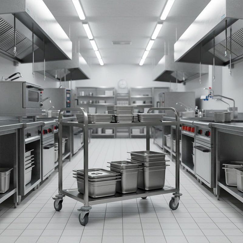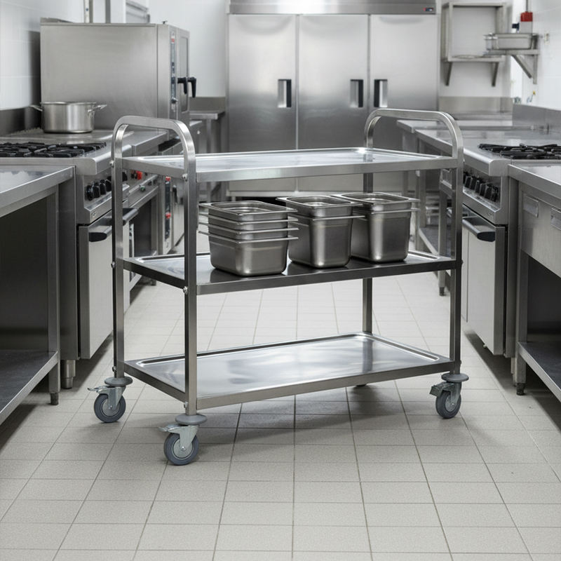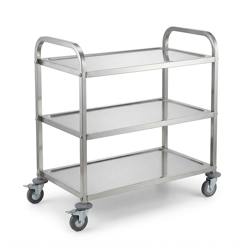 Carrello da Cucina a 3 Ripiani in Acciaio Inox, Carrello di Servizio con Ruote per Ristoranti, Vendita Diretta dalla Fabbrica