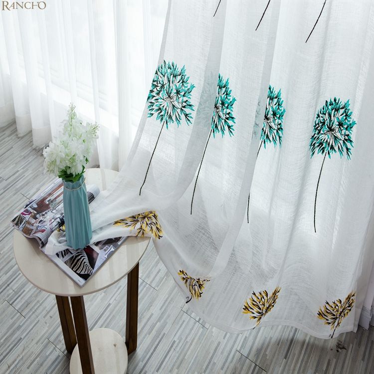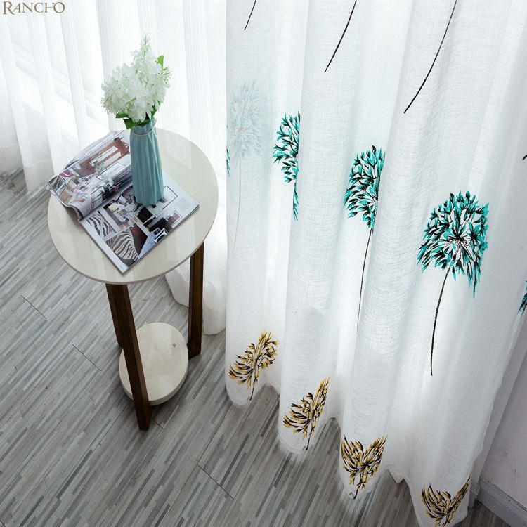 Fabbrica diretta di lusso di alta qualità USA tende foglie oro ricamato bianco tende trasparenti per il soggiorno