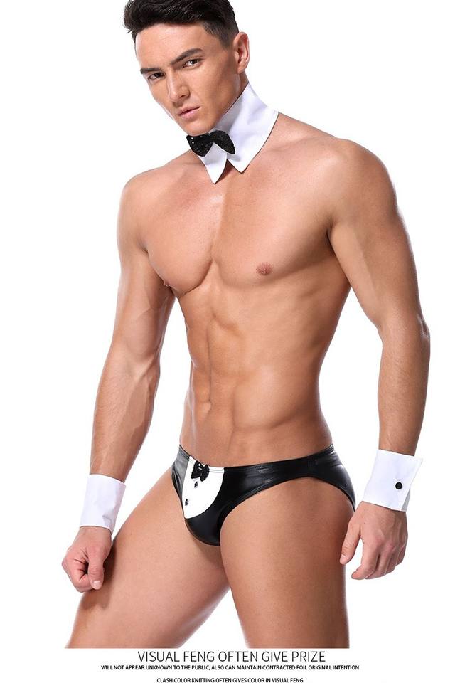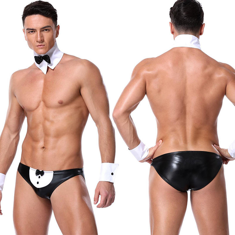 Factory Direct Men's Thin Patent Leather 3-Point Harness Underwear Set Sexy Halloween Nightclub Bar Pole Dance Costume for Sex