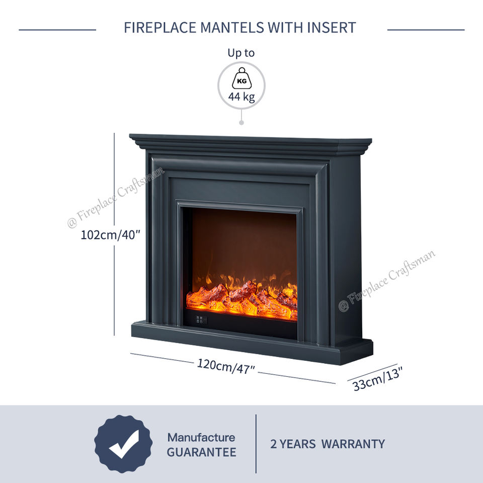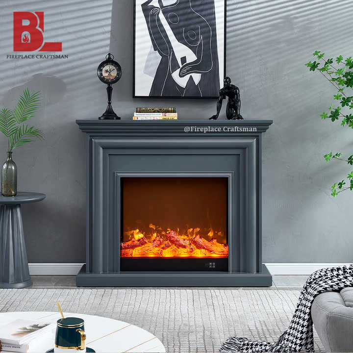 [ Direttamente dalla Fabbrica ] Caminetto Elettrico Moderno Grigio con Fiamma LED Effetto Legna e Cornice Decorativa in Resina