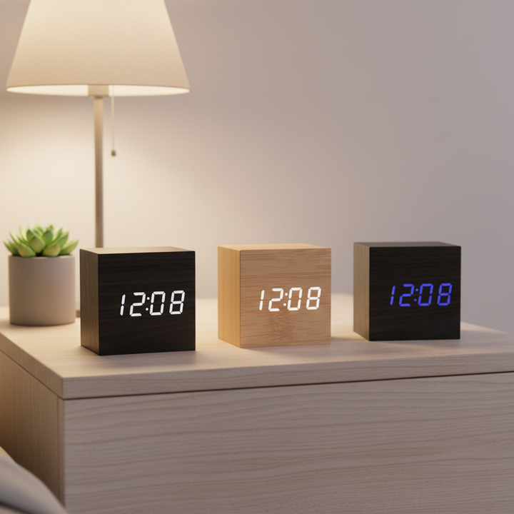 Orologio Sveglia Digitale LED Moderno Grande con Ricarica USB, Design Contemporaneo in Legno, Vendita all'Ingrosso Diretta dalla Fabbrica