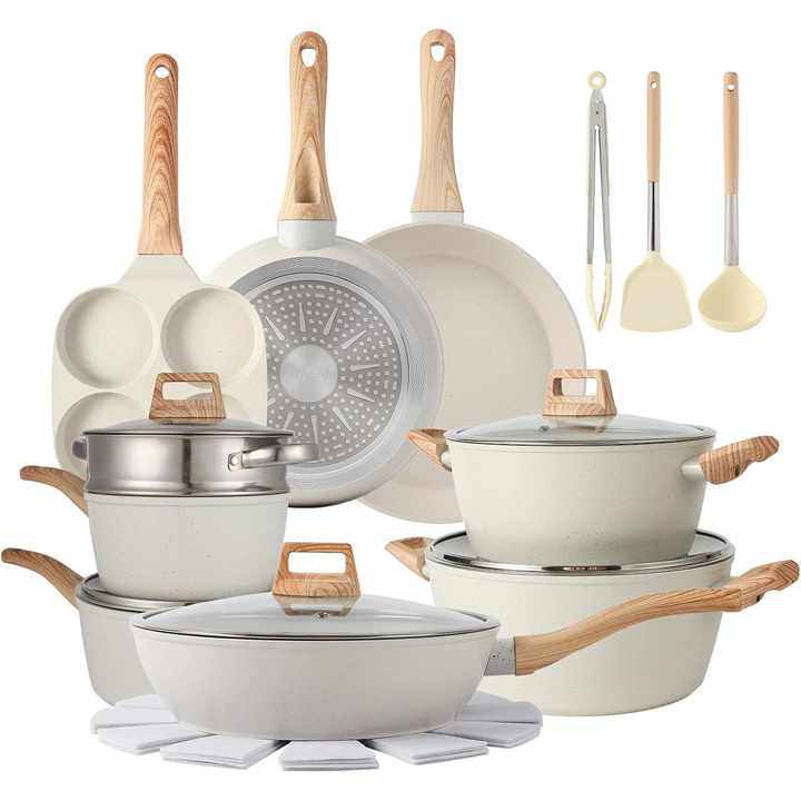 Factory Direct Sale 21 Pcs White Ceramic Granite Aluminum Cookware Sets Non-Stick Pots Pans Bakelite Handle Induction Bottom