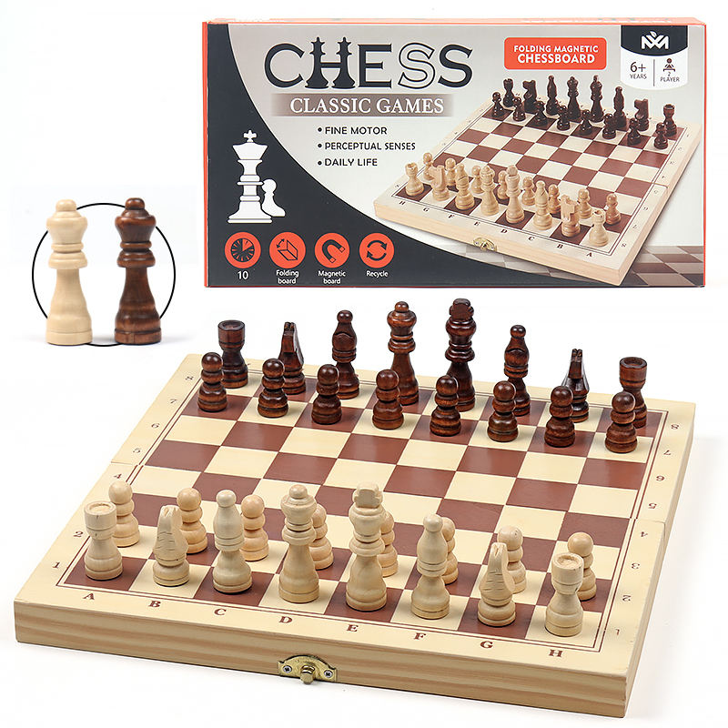 Scacchiera Pieghevole in Legno da Vendita Diretta dalla Fabbrica, Gioco da Tavolo Classico Portatile per Bambini, Regalo per Ragazzi e Ragazze per l'Interazione con i Genitori