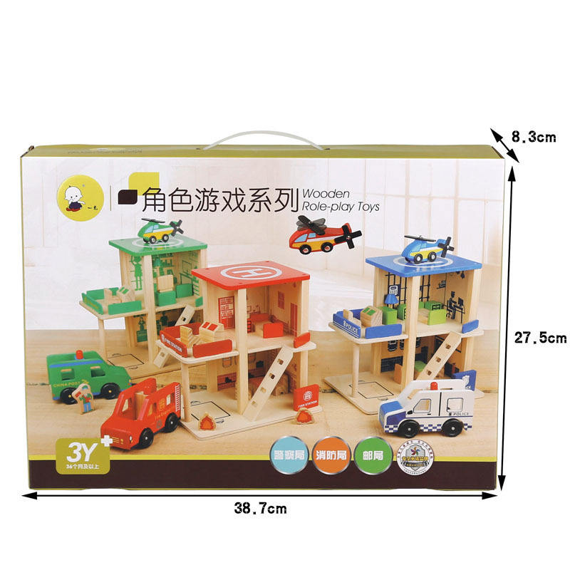 Vendita diretta in fabbrica bambini creativi giochi di ruolo giochi di ruolo simulazione stazione di polizia vigili del fuoco giocattoli in legno per bambini