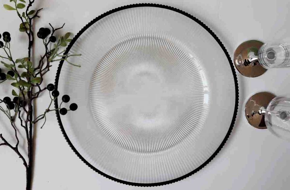 Black Rim Clear Ribbed Charger Glass Plate