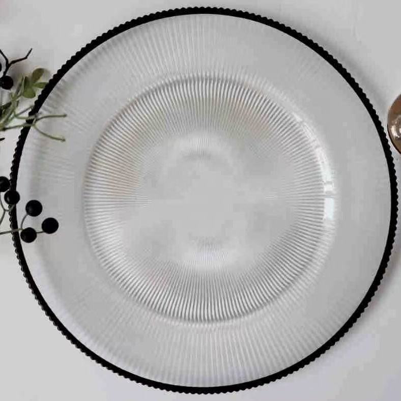 Product Name:Black Rim Clear Ribbed Charger Glass Plate