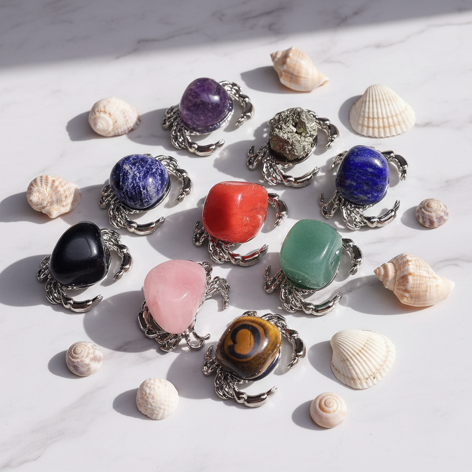 Vendita Diretta dalla Fabbrica: Ornamenti a Forma di Granchio in Cristallo Naturale Lucidato, Ametista e Avventurina Verde per Decorazione d'Interni
