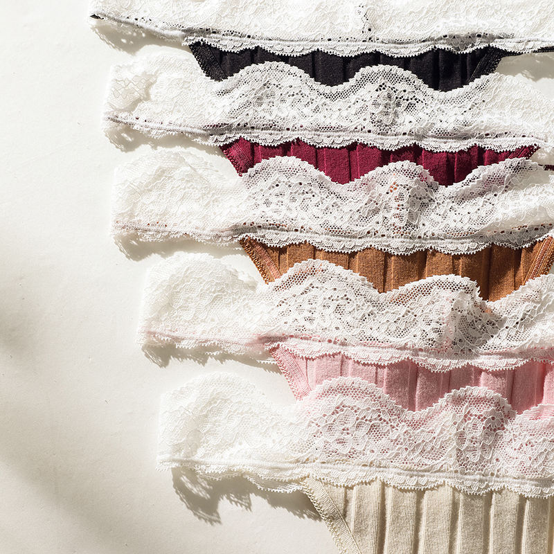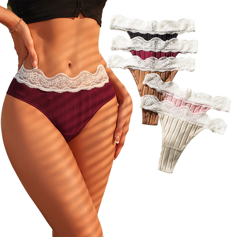 Vendita diretta in fabbrica per le donne a vita bassa perizoma di cotone Sexy in pizzo con perizoma a prova di perdite mutandine intimo con motivo solido in vita Logo