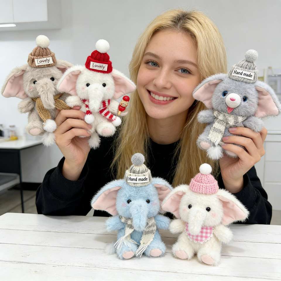 Factory Direct Sales Creative Plush Elephant Doll Keychain Pendant, Cute PP Cotton Doll, Gift Bag Ornament, Claw Machine