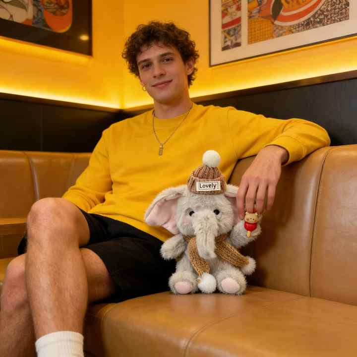 Select nowColor: Khaki scarf and hat - Khaki elephant