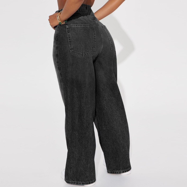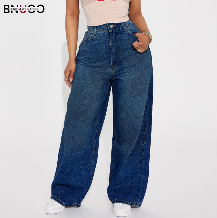 Vendita Diretta dalla Fabbrica Jeans da Donna Personalizzati a Gamba Dritta e Vita Alta, Vestibilità Comoda, Stile Classico Baggy