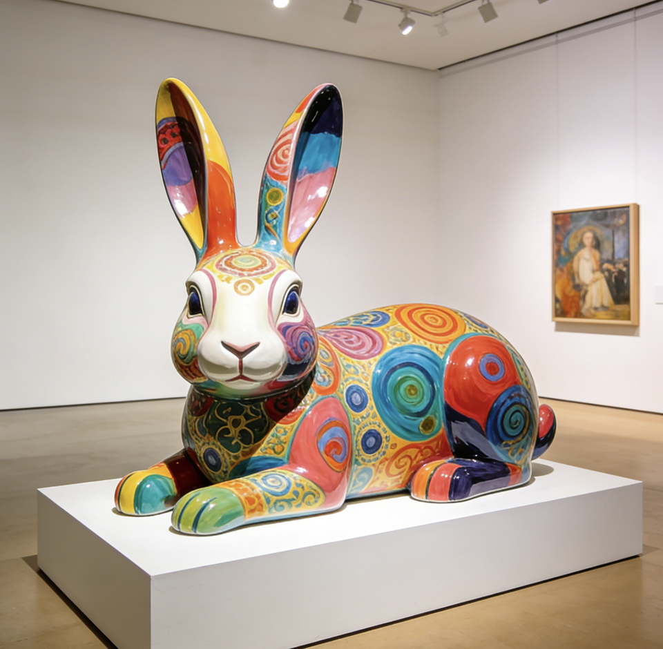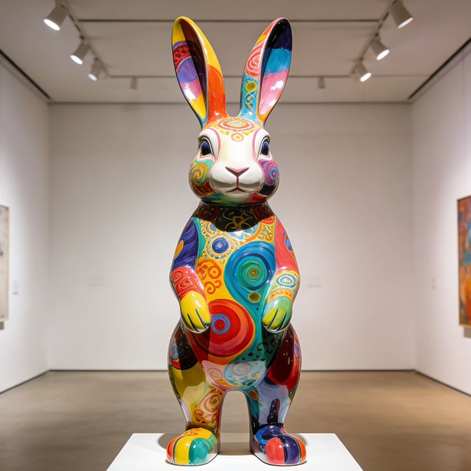 Nome dell'articolo:Scultura di Coniglio in Fibra di Vetro in Stile Artistico Popolare