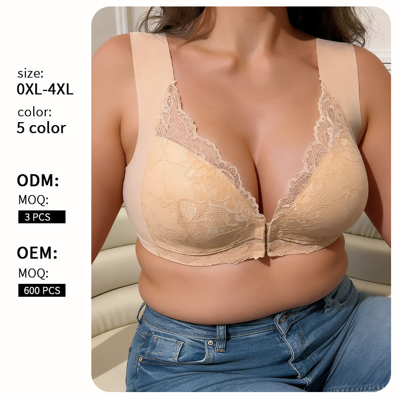 Reggiseno in Pizzo con Apertura Frontale, Taglie Forti, Copertura Totale, Nasconde il Grasso sulla Schiena, Regolabile, Produzione Diretta