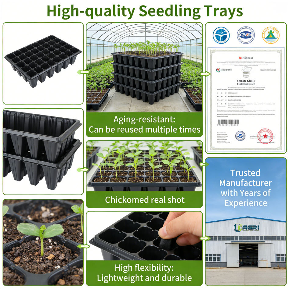 Plastic Type PET: The use of PET plastic ensures the trays are lightweight and durable, making them easy to handle and long-lasting for multiple growing seasons.