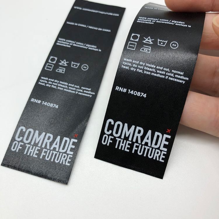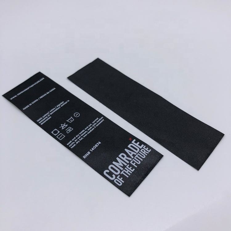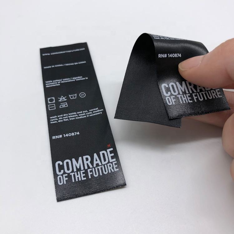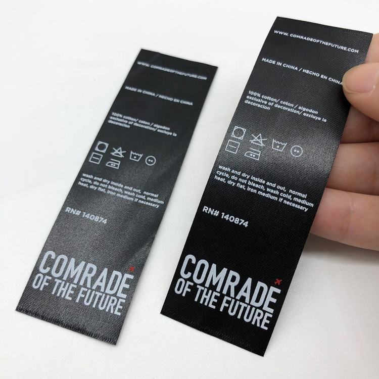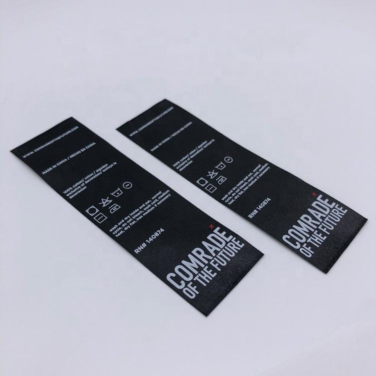 Etichette di Cura in Raso Nero Personalizzate con Logo Stampato e Istruzioni di Lavaggio, Fornitura Diretta dalla Fabbrica