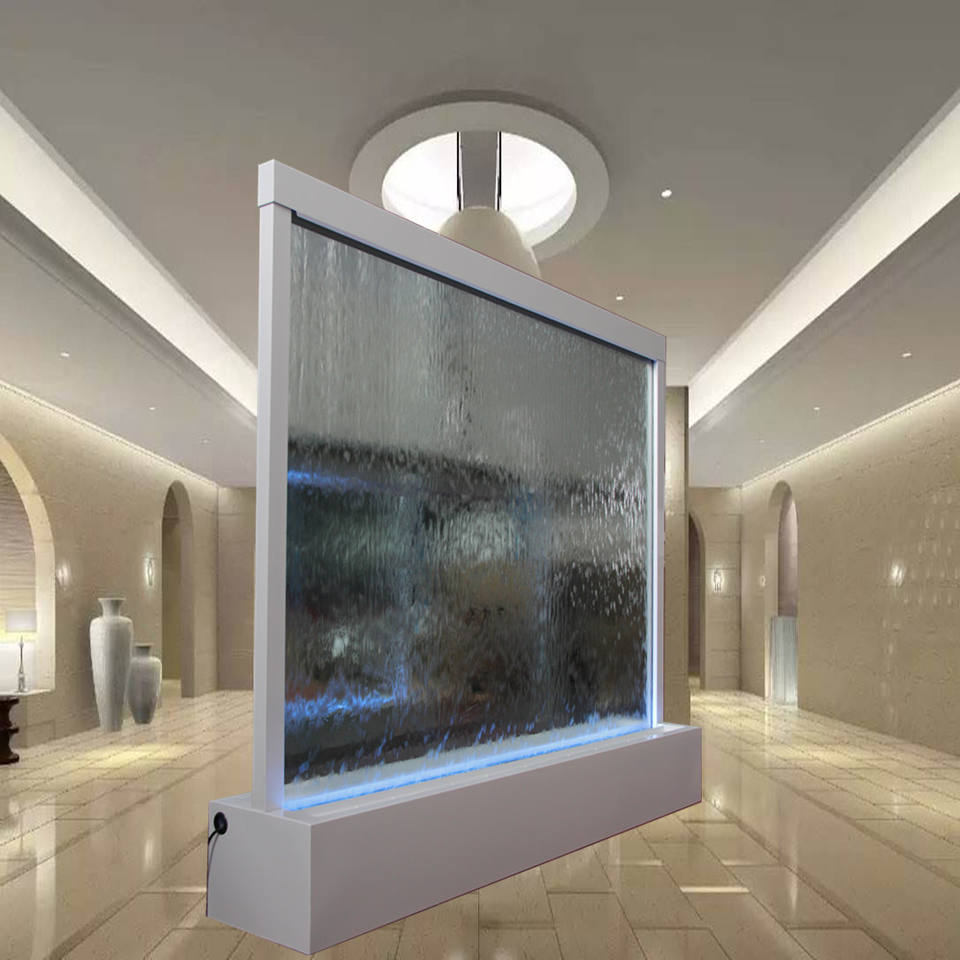 Fontana d'Acqua in Vetro Temperato Trasparente con Cascata a Parete in Acciaio Inox per Decorazione d'Interni, Vendita Diretta dalla Fabbrica