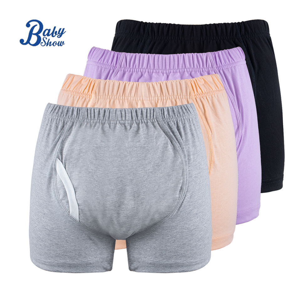 Factory Direct Washable Men Plain Color Cloth Diaper 50-100kg Reusable Elastic Men's Four Cornered Underwear for Incontinence