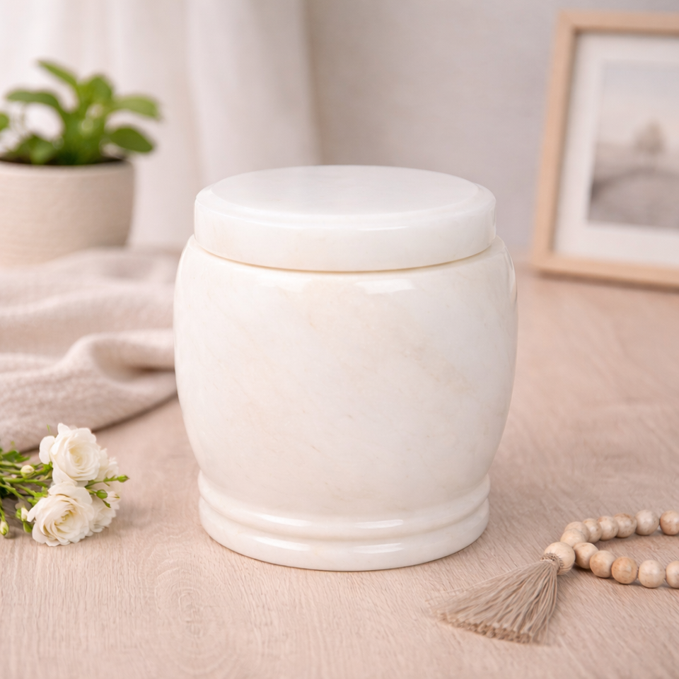 Urna Cineraria in Marmo Bianco Direttamente dalla Fabbrica, Design Europeo Durevole, Contenitore per Ceneri di Adulti per Funerali Interni