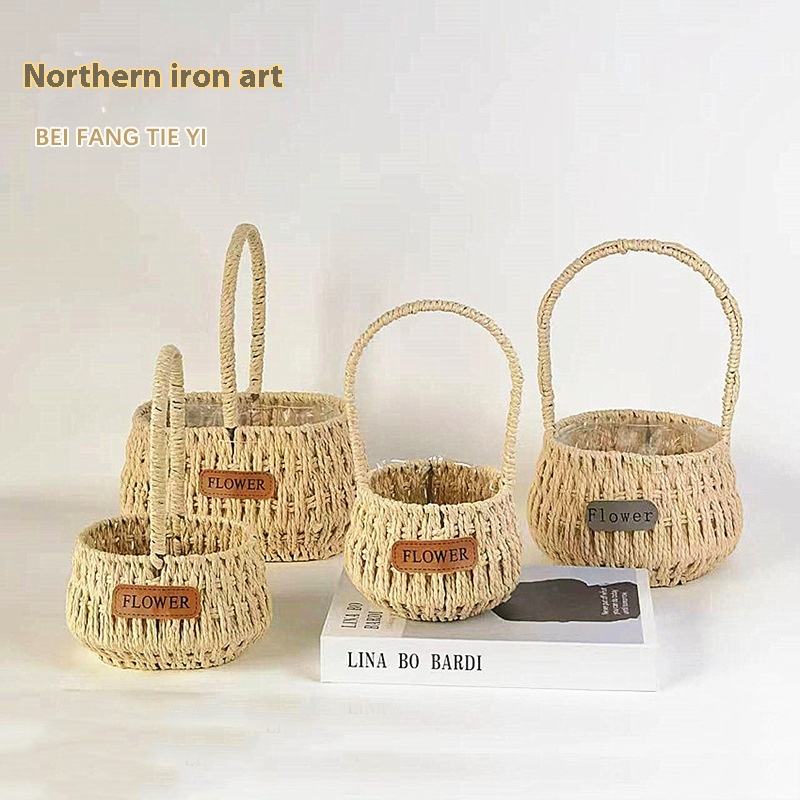 Cesto di fiori intrecciato direttamente in fabbrica corda di carta e vimini in Rattan per la festa della mamma abbraccio vaso di fiori all'ingrosso disponibile