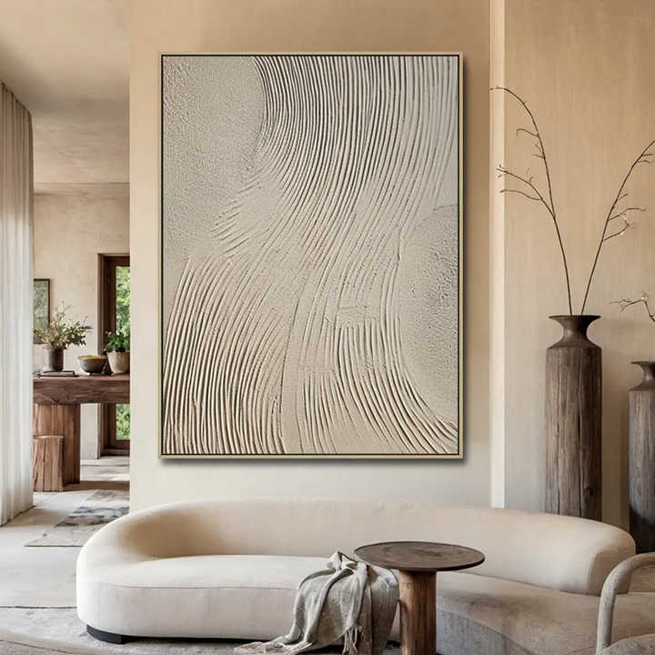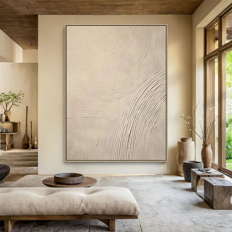 Factory Directly Hotel Project Artwork Beige Large Minimalist Abstract Neutral Home Decor Plaster Painting 3D Texture Wall Art